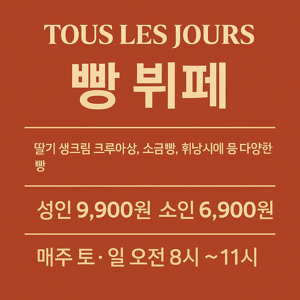 뚜레쥬르 강남직영점에서는 주말 아침에 다양한 빵을 무제한으로 즐길 수 있는 빵 뷔페를 운영하고 있습니다.